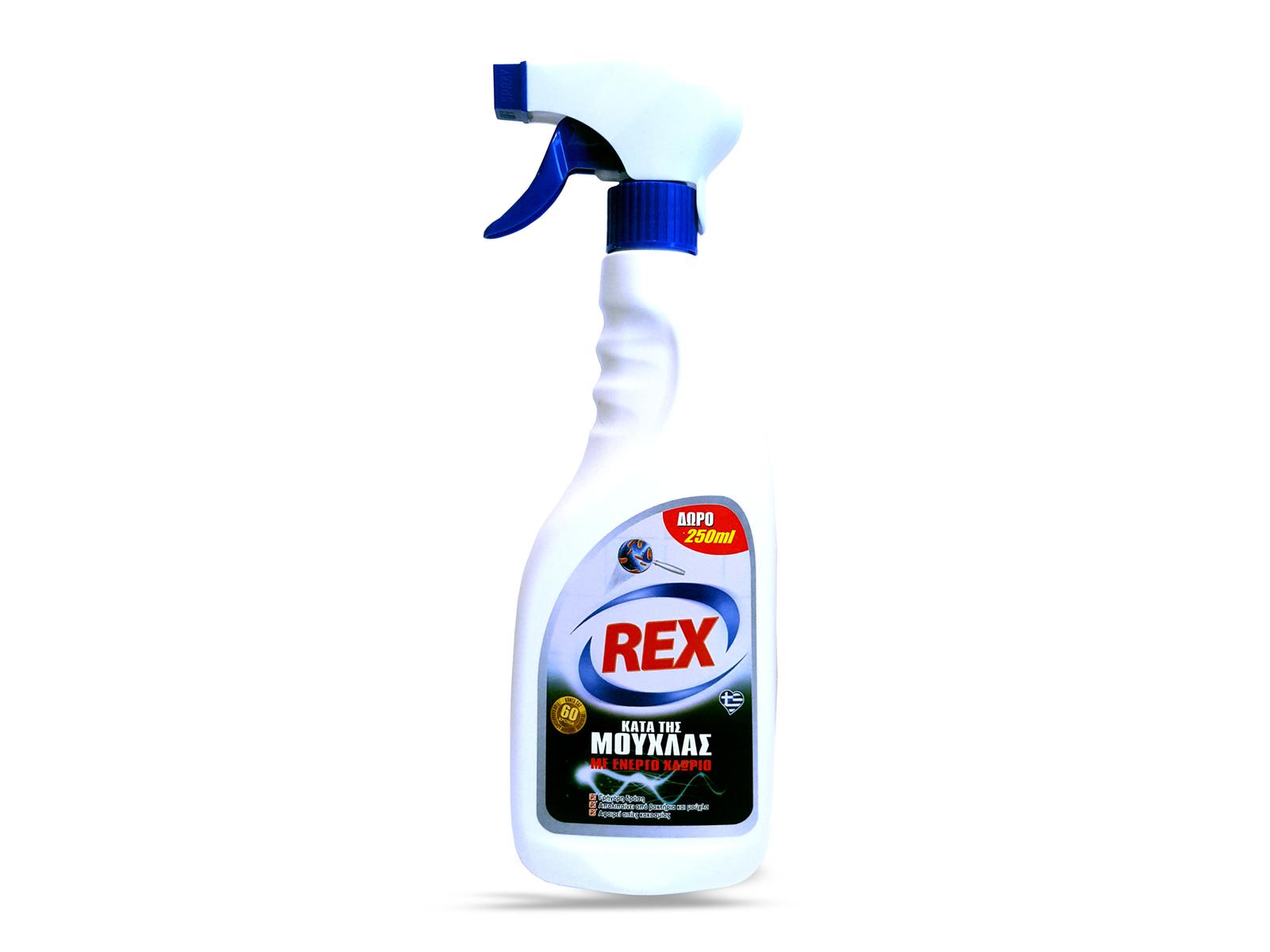 Περιέχει ενεργό χλώριο. Το spray REX κατά της μούχλας δρα γρήγορα απολιπαίνοντας από βακτήρια και μούχλα. Αφαιρεί αποτελεσματικά όλες τις αιτίες κακοσμίες.