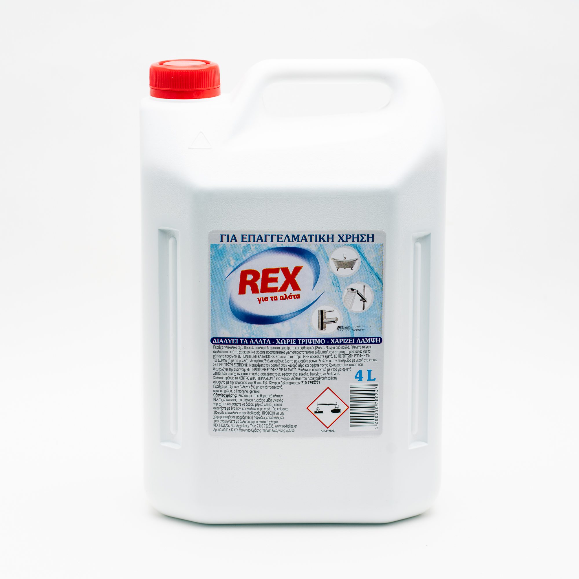 Το υγρό κατά των αλάτων rex διαλύει τα άλατα του μπάνιου χωρίς τρίψιμο.