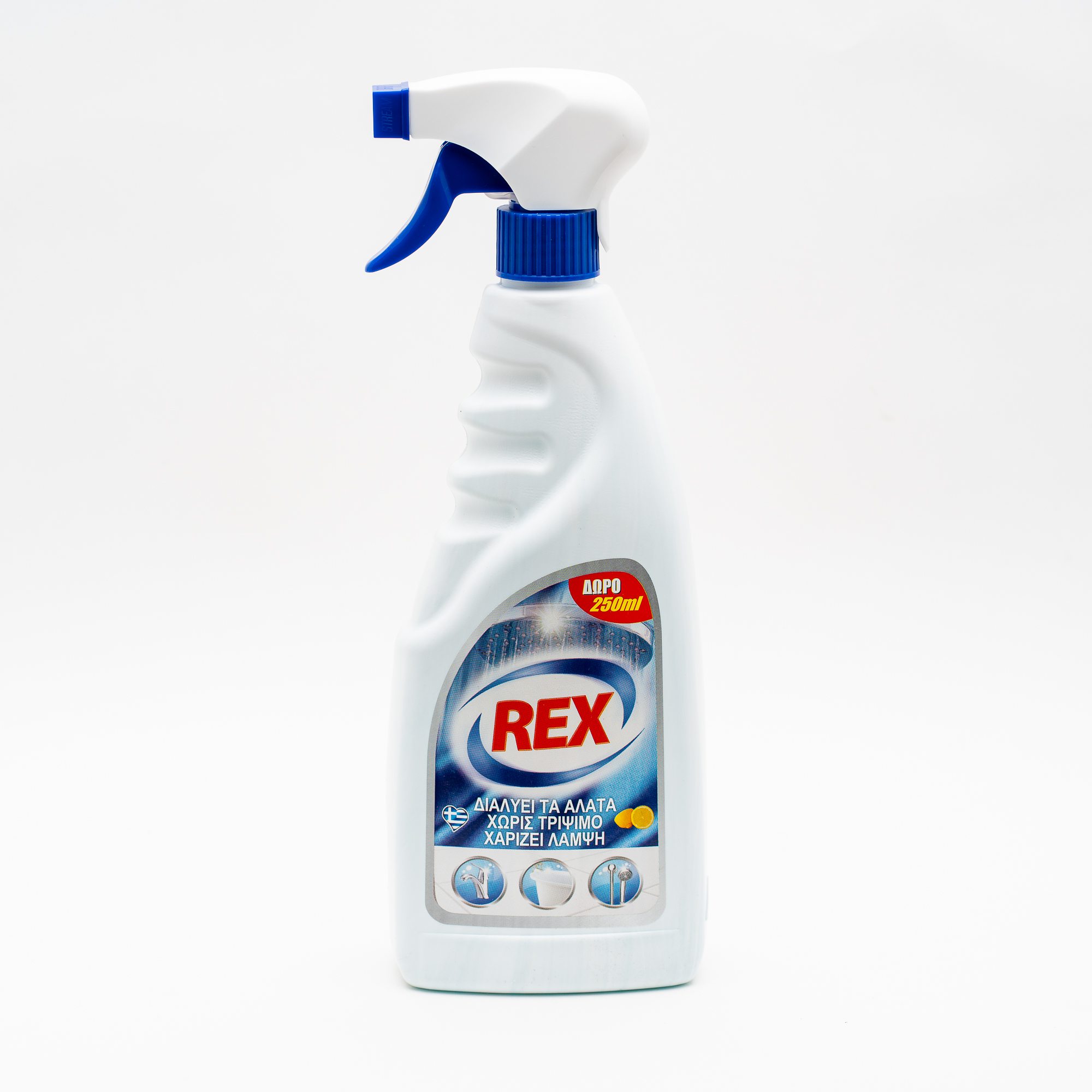 Το υγρό κατά των αλάτων rex διαλύει τα άλατα του μπάνιου χωρίς τρίψιμο.