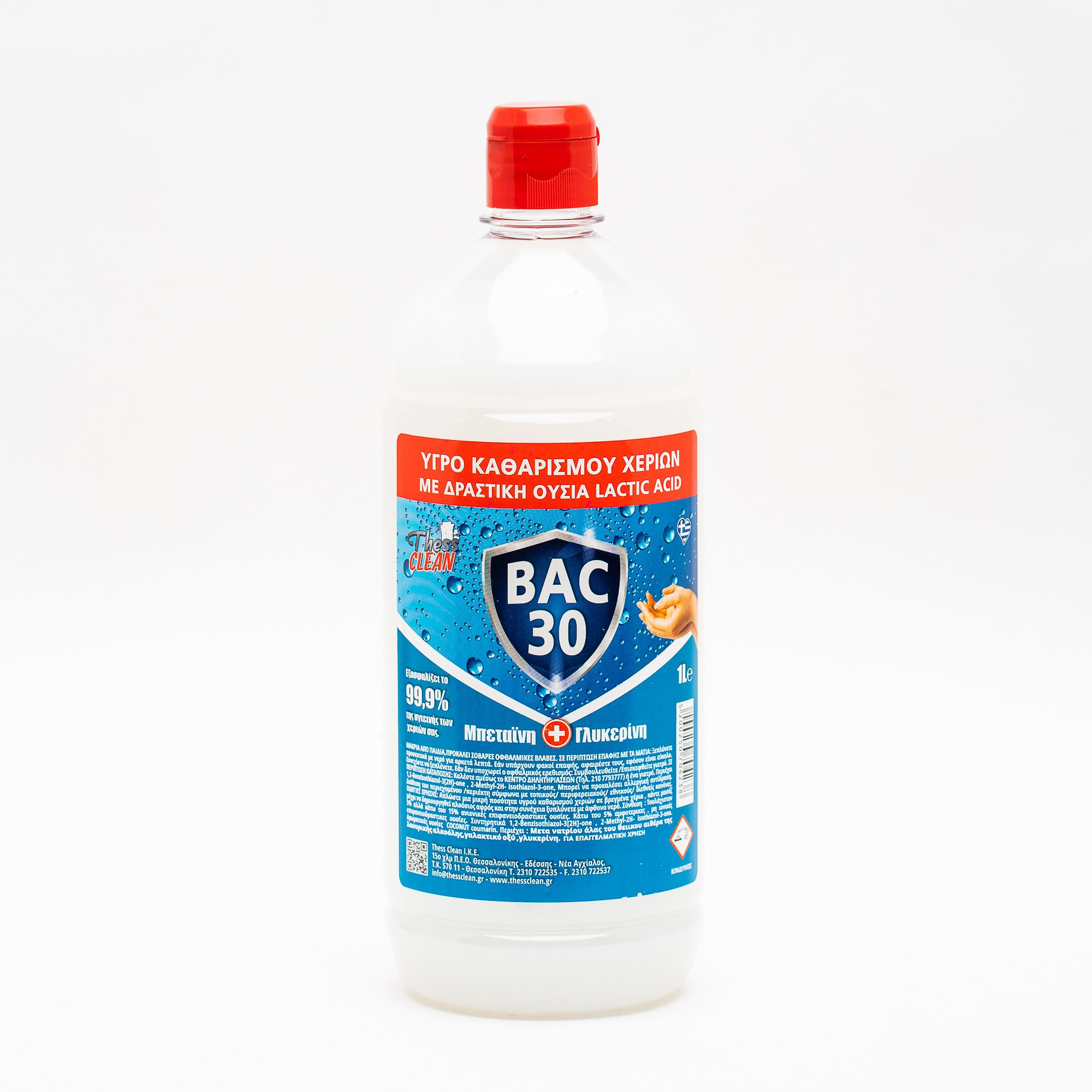 Υγρό καθαρισμού χεριών BAC 30 με δραστική ουσία Lactic Acid 1lt